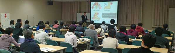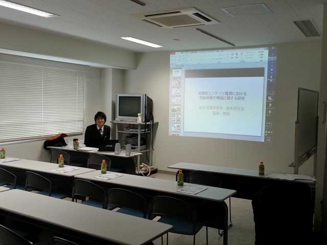 - 2011.1.7(金) 梶本研修士2年の佐藤未知さん、修士1年の蜂須拓さんによる特別講演が行われました。佐藤さんによる留学報告(VR学会誌)