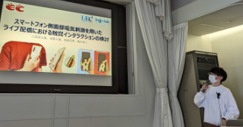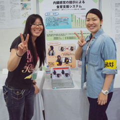 - 2010.10.14-17 IVRCで優勝した学部4年の有志チーム(チーム名:こうしゅうはせいぶん,高橋宣裕さん,岡崎龍太さん,岡部浩之さん,吉川博美さん,粟生馨奈子さん,山川隼平さん,横山牧さん)の作品Sense-RoidがDigital Contents Expoで展示されました。