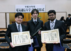 - 2018.3.6 中井さん(修士卒),岡崎さん(博士卒),工藤さん(修士卒),梶本先生がヒューマンインタフェース学会 2018年度通常総会、学会賞授与式および特別講演会で第18回論文賞を受賞しました.