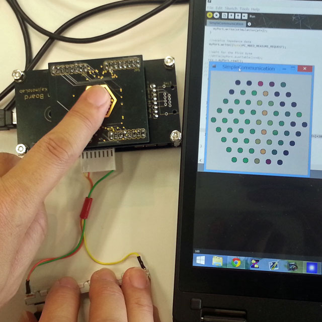- Processingによる「回転運動の提示+指の接触位置と接触面積の表示」[