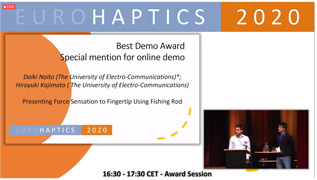 Daiki Naito(Master student) received Best Demo Award (special mention for online demo)at Eurohaptics 2020